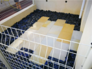 Posé sur un géotextile et d’une épaisseur de 10 a 15 cm, la couche d’ardoise limite la pousse des adventices et ajoute du caché à la terrasse.