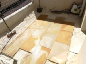 Pour profiter de l’espace maintenant dégagé, elle est posée sur sable et composée de pierres naturelles. L’agencement choisi s’intègre bien dans l’espace et donne une touche design moderne.
